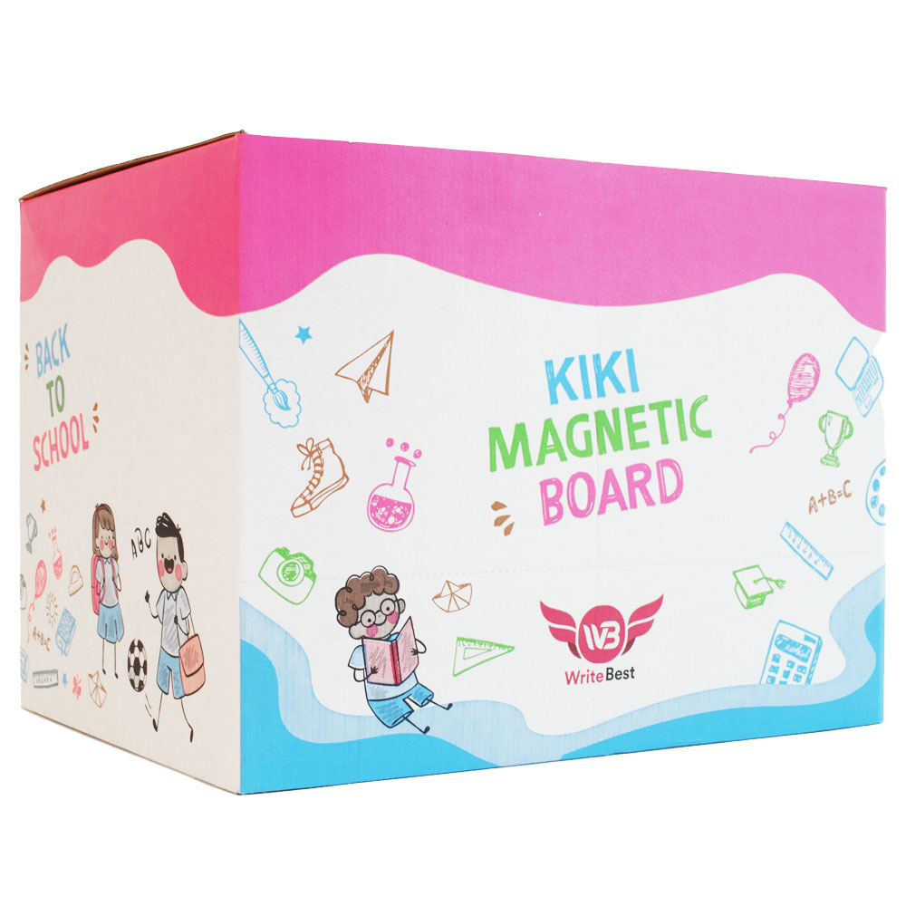 - Kiki Magnetic Board is perfect for children in their journey of creativity and exploration. It comes in a set with a marker and magnetic buttons.